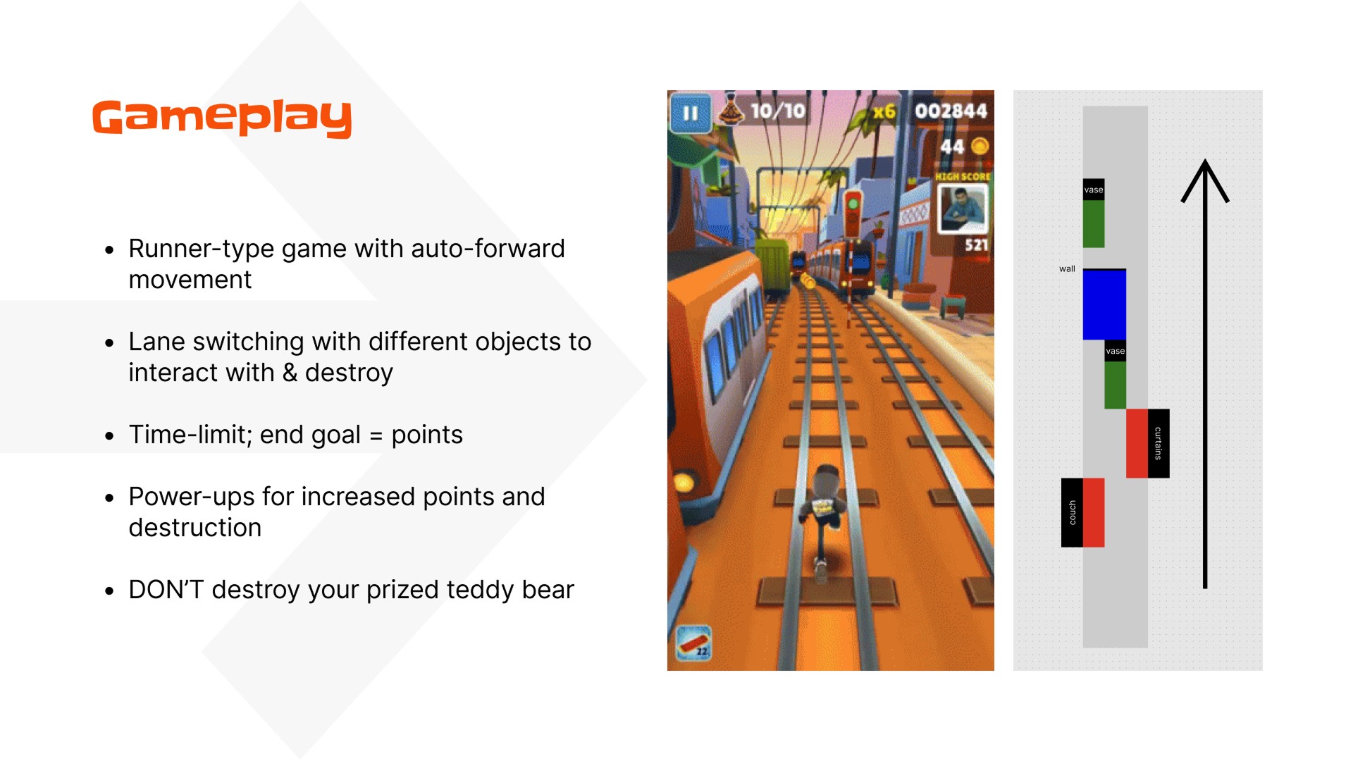 Implementing the steering had a major impact in the direction of the project – after all of the development on the open-map concept, we realized that the constant player run speed got them stuck on objects, walls, and corners. So, we shifted our approach again, back to our original runner-style game