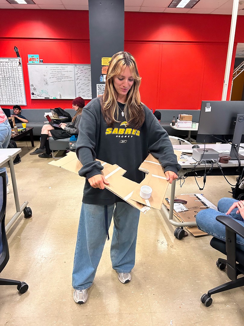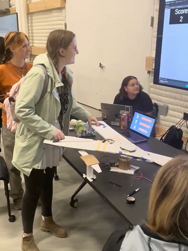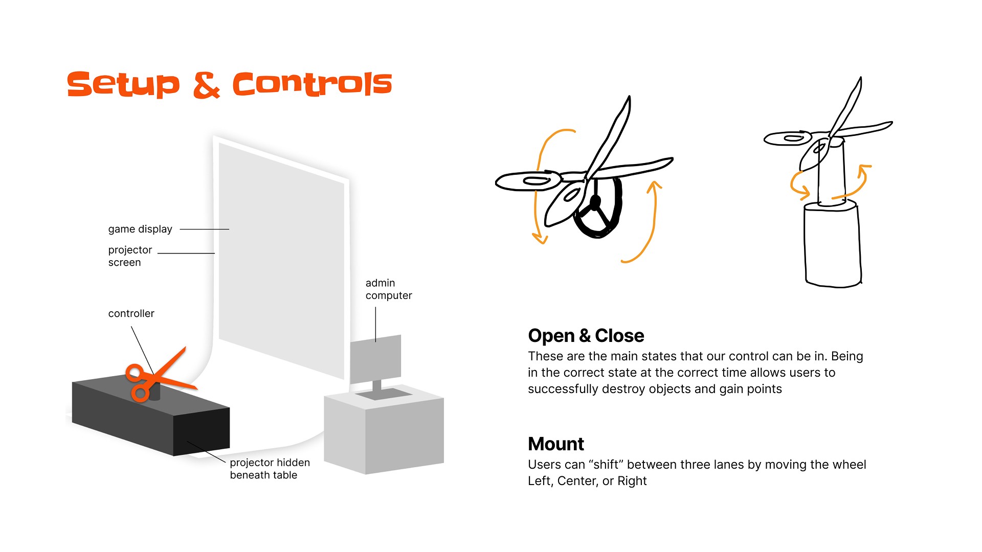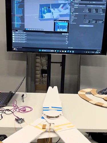 After implementing a potentiometer for steering, we playtested again a few weeks later. By rotating around the center joint of the scissors, users could fully explore the house and and wreak havoc